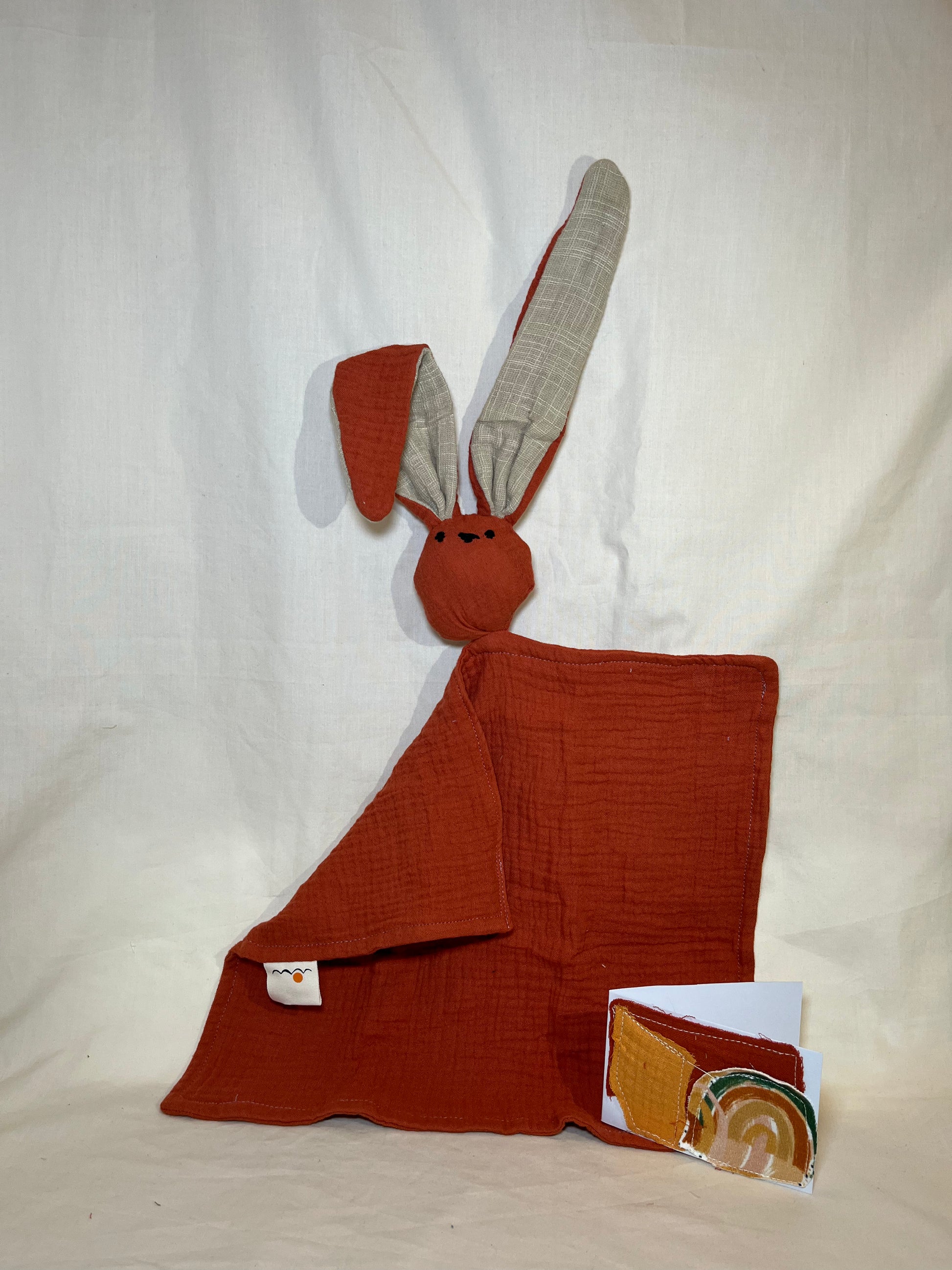 These snuggle blankets are made from leftover cotton fabric used for my rompers — beautiful scraps that deserved a second life. Each piece is naturally soft and completely unique.